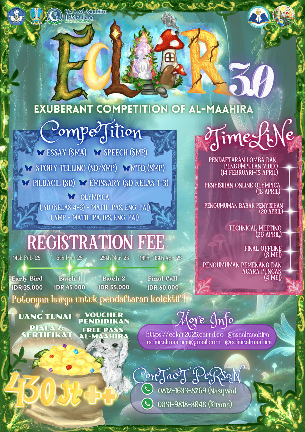 ECLAIR (Exuberant Competition of Al-Maahira) is an annual agenda hosted by the student council of SMA Al-Maahira IIBS Malang, ASA (Al-Maahira Student Association). Beyond being a national competition ground, ECLAIR unfolds as a juncture in blending the art of competition with character building. Plunge in this sojourn, where excellence is adorned with exuberance, transforming mere opponents into comrades on a shared path of growth and enlightenment.