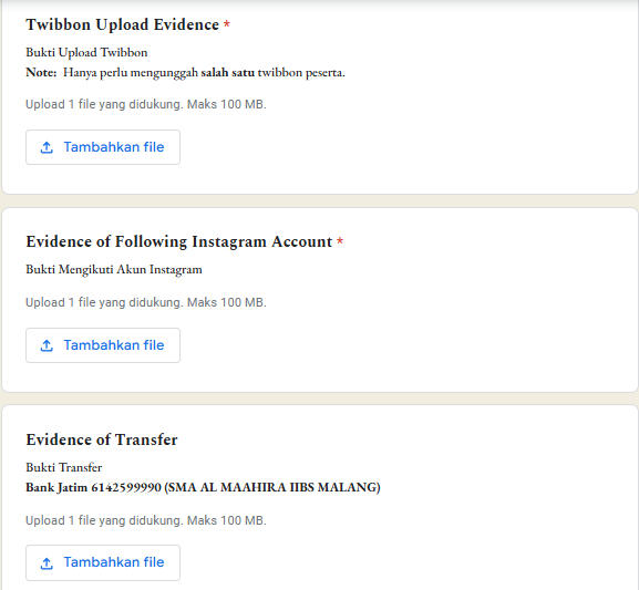 peserta mengirimkan bukti upload twibbon dan bukti follow instagram serta bukti transfer